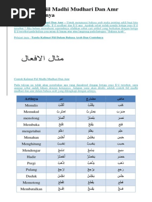 20 Contoh Fiil Madhi Mudhari Dan Amr Dengan Artinya