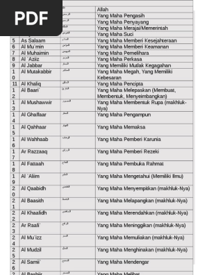 Tabel 99 Asmaul Husna Latin Arab Dan Terjemahan Indonesia Inggris