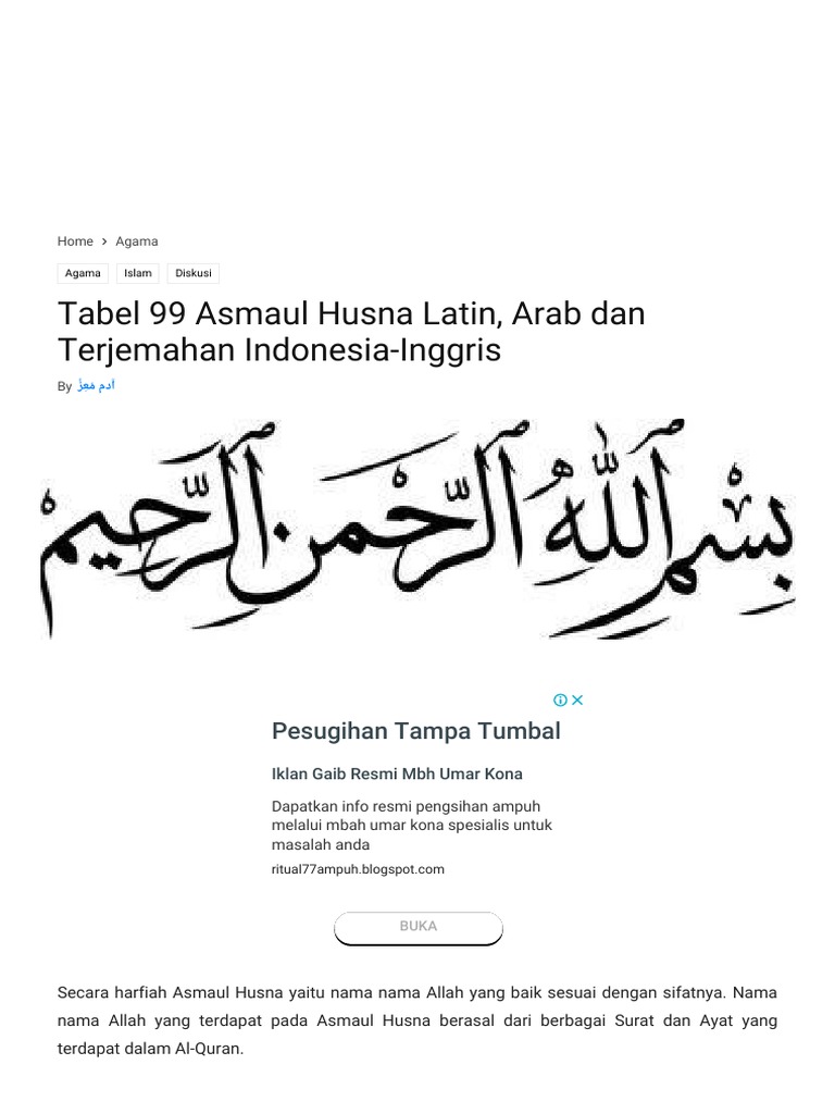 Tabel 99 Asmaul Husna Latin Arab Dan Terjemahan Indonesia