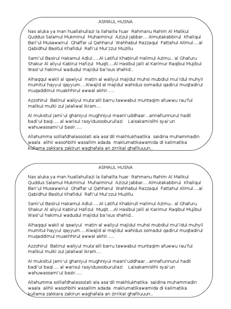 Asmaul husna nas aluka arab. Ukuran penuh download asmaul husna pdf. Download bacan pdf. Asmaul husna asmaul husna atau nama nama baik bagi allah berjumlah 99. أ ل م ل ك ا لق د و س الس ل ام ا لم ؤ م ن ا لم ه ي م ن ال ع ز ي ز ا لج ب ار.
