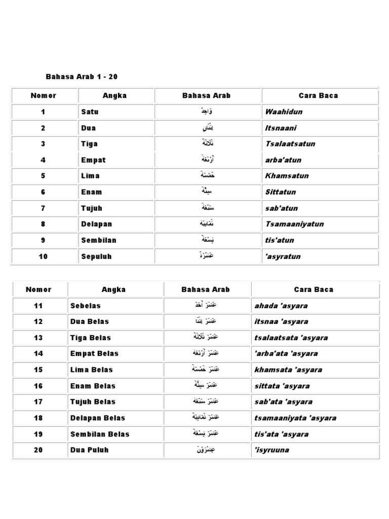 Anda bisa pelajari bertahap. Bahasa arab angka 1 20.