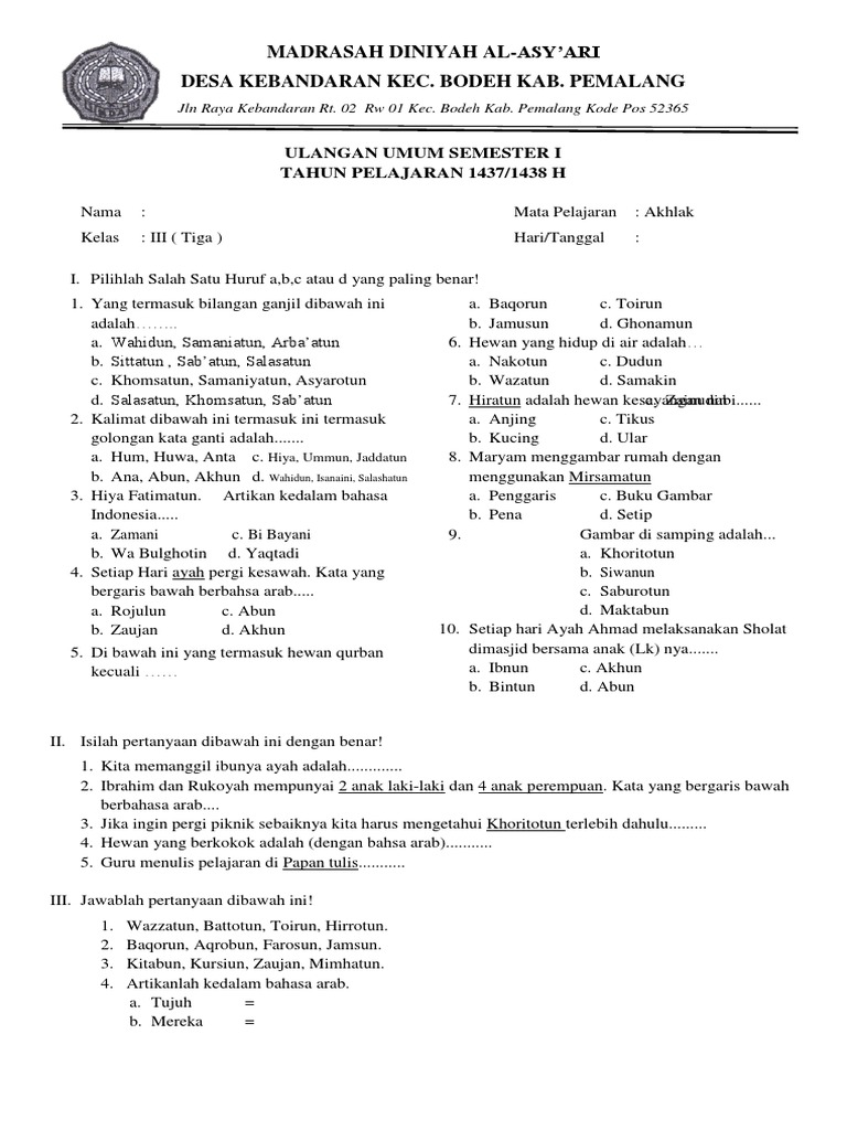 Ilmu Pengetahuan 1 Contoh Soal Benar Salah Bahasa Arab
