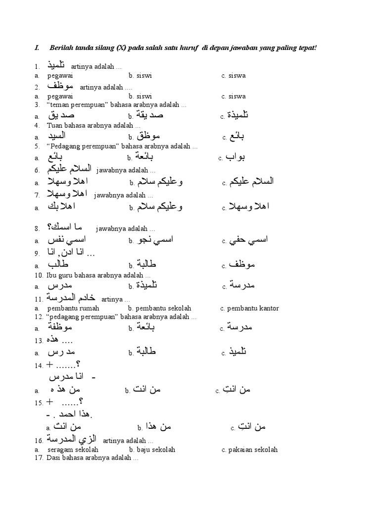 Doc Lembar Soal Bahasa Arab Arip Rahman Hakim Academia Edu