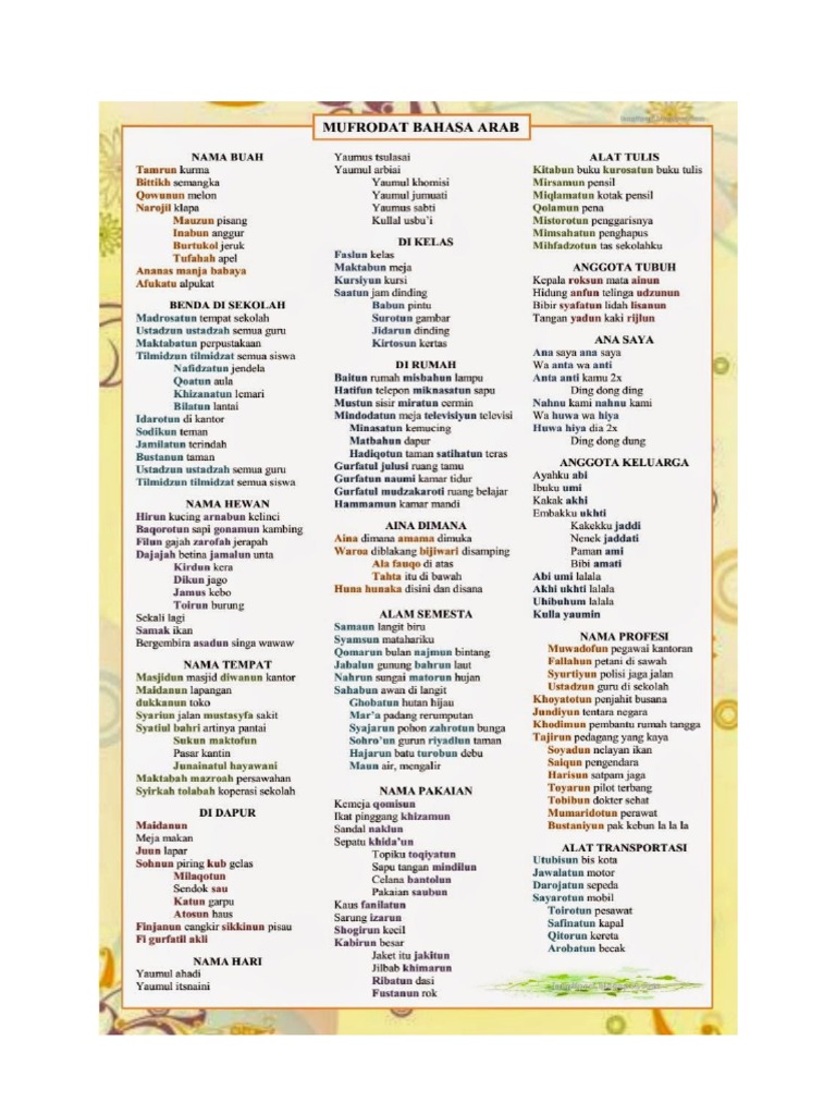 Bahasa Arab Dan Artinya Mufradat B Arabaqsaamul Jam I Macam Macam