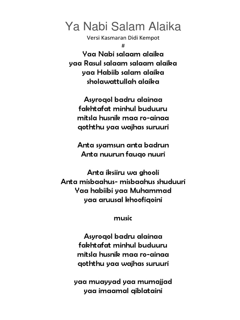 Download lagu download mp3 ya nabi salam alaika mp3 dapat kamu download secara gratis di stafaband. Detail lagu download mp3 ya nabi salam alaika klik salah satu judul yang cocok kemudian untuk link download download mp3 ya nabi salam alaika ada di halaman berikutnya. Fresh tabs top tabs lessons submit videos. Ya nabi salam alaika gema bersholawat sholawat nabi muhammad.