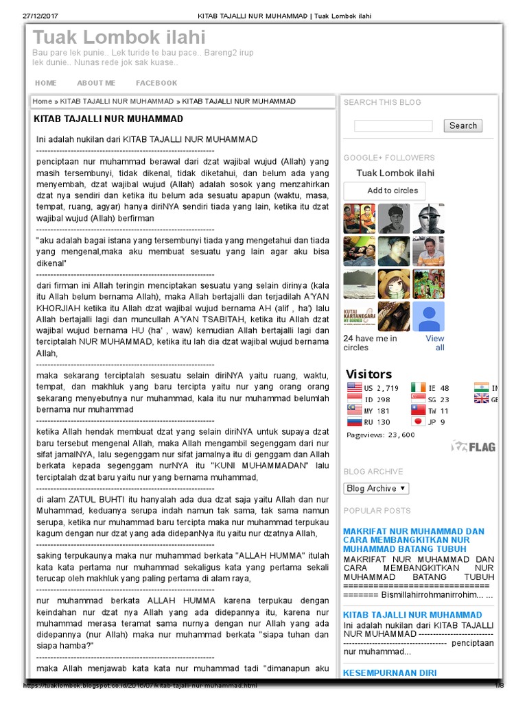 Kitab Tajalli Nur Muhammad Tuak Lombok Ilahi