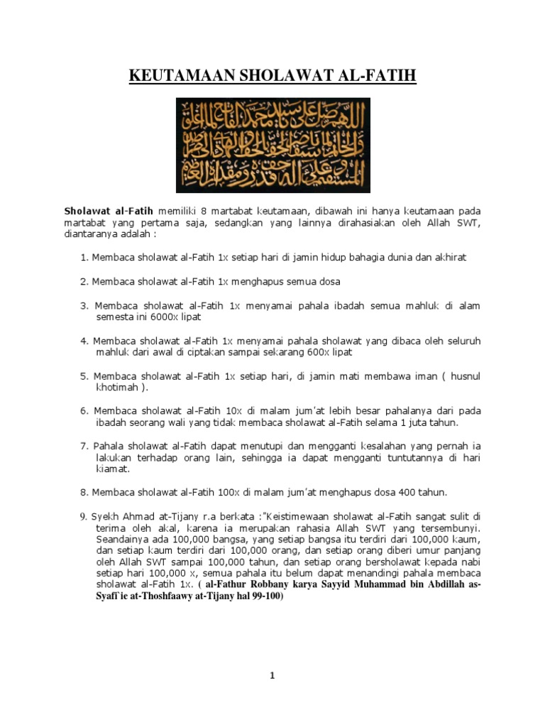 Sholawat Al Fatih Sholawat Ini Fastabiqul Khairat Tawau