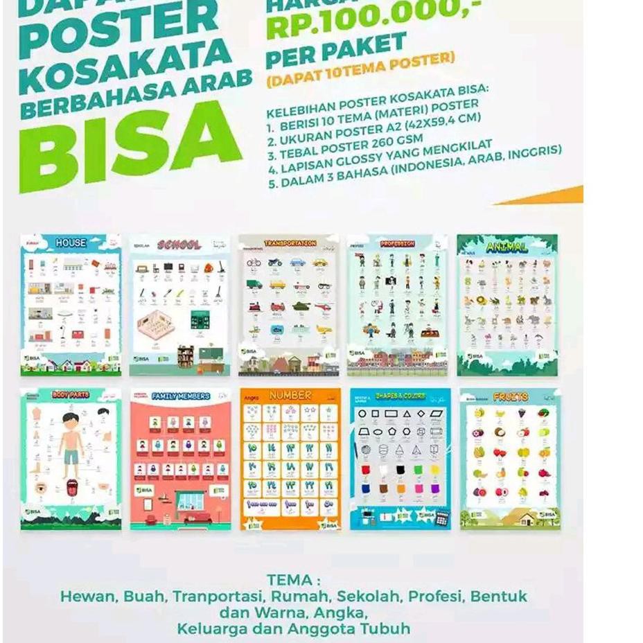 Poster Kosakata 3 Bahasa Arab Inggris Indonesia 1 Paket Isi 10