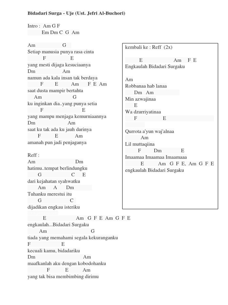 Ingat Uje Ini Lirik Lagu Bidadari Surgaku Fix Indonesia