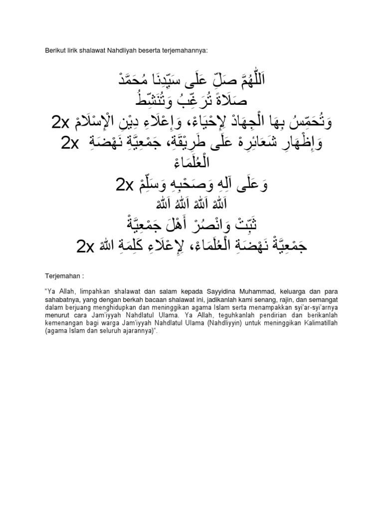 Teks Sholawat Nahdliyyah Arab Latin Dan Artinya Karya Kh
