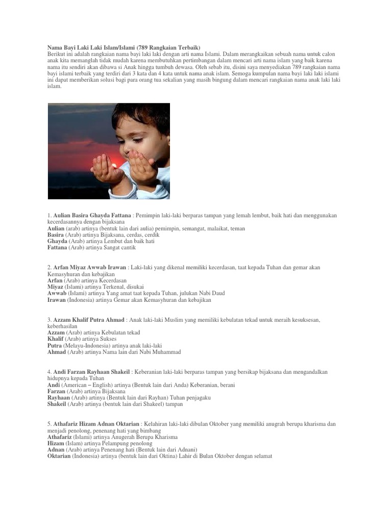 Kumpulan Nama Bayi Laki Laki Islami Dan Sholeh Lengkap Arti Nama
