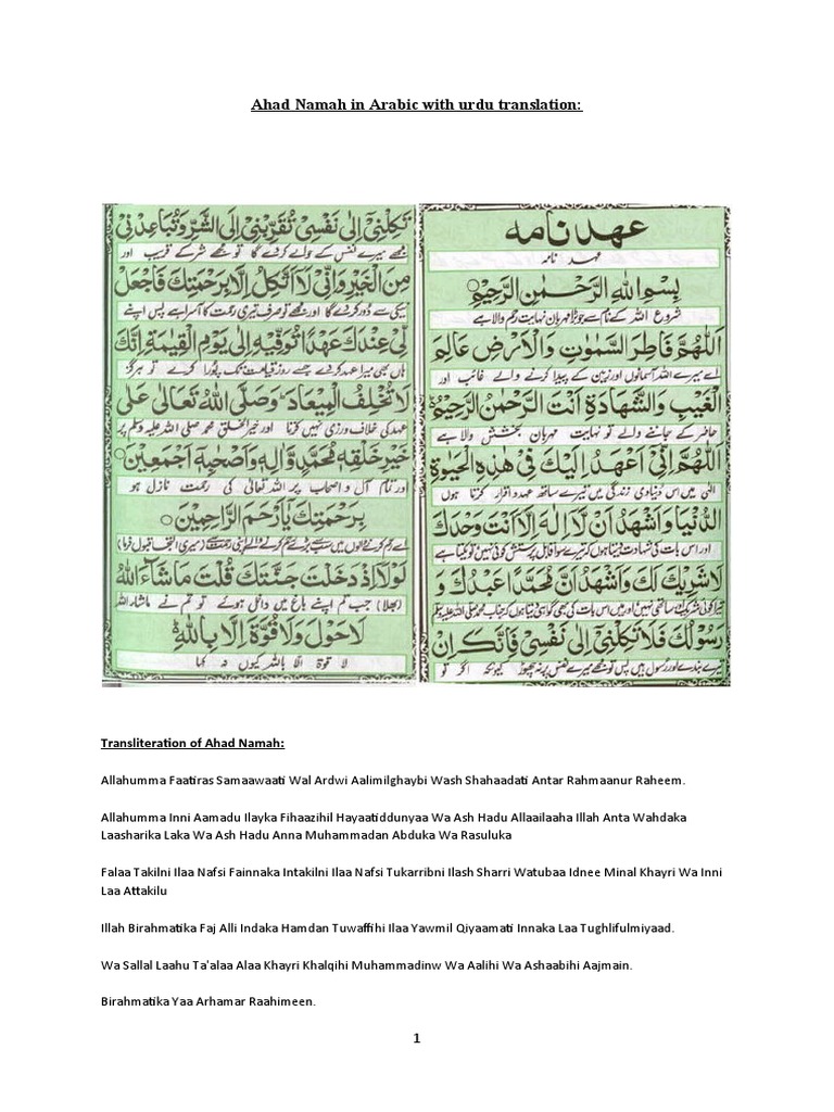 Ahad Nama Arabic Text English Text With Translation In Urdu And