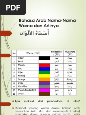 Bahasa Arab Nama Nama Warna Dan Artinya