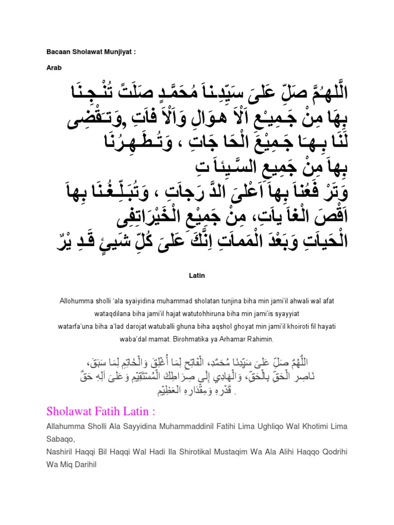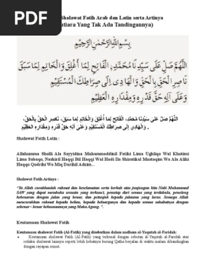 Bacaan Sholawat Fatih Arab Dan Latin Serta Artinya Doc