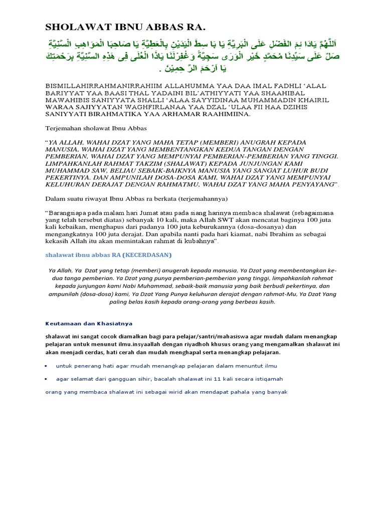 Sholawat Ibnu Abbas Sangat Baik Untuk Kedai Sufi Ilmu Hikmah