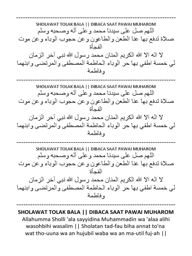 Do A Tolak Bala Penyakit Dan Bencana Li Khomsatun Uthfi Biha