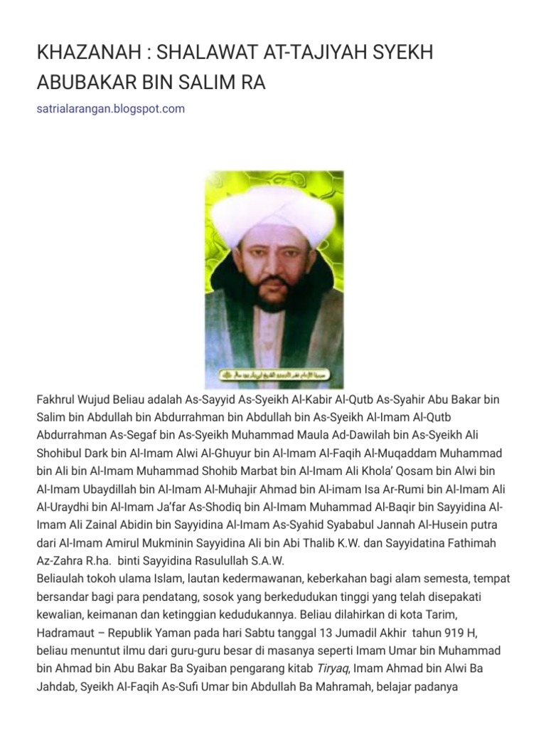 Shalawat At Tajiyah Syekh Abubakar Bin Salim Ra Khazanah