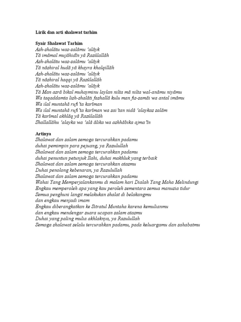 Http Isromag Blogspot Com 2013 05 Lirik Dan Arti Shalawat Tarhimsyair Html