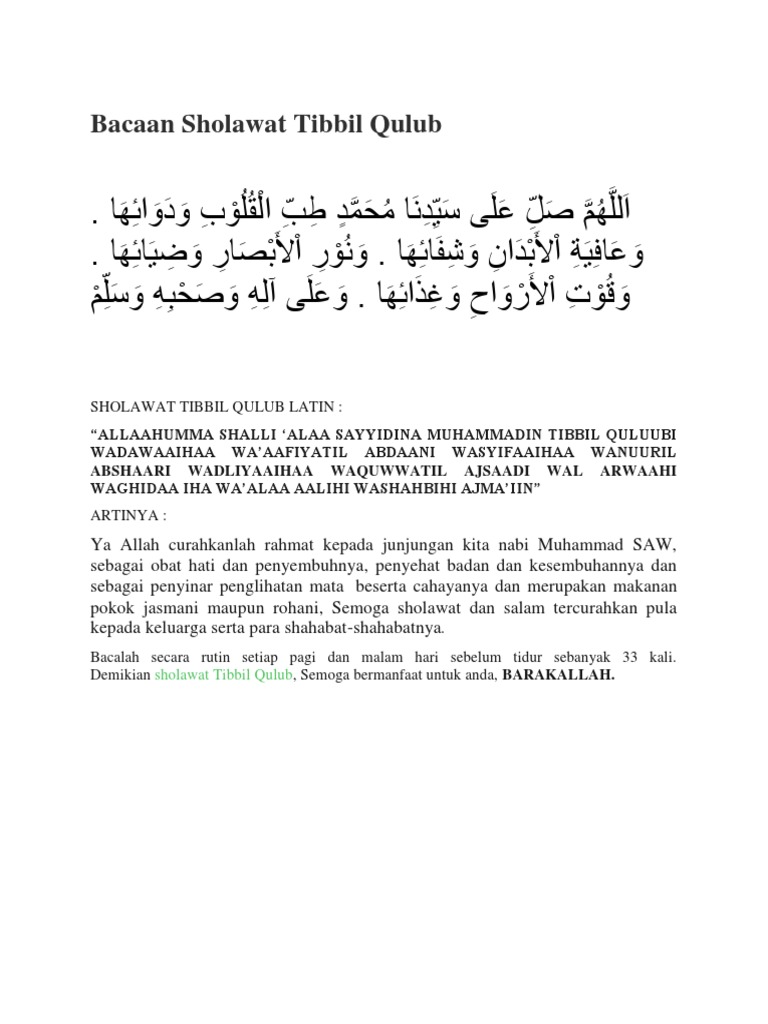 Idoc Pub Teks Bacaan Sholawat Tibbil Qulub Arab Latin Lengkap