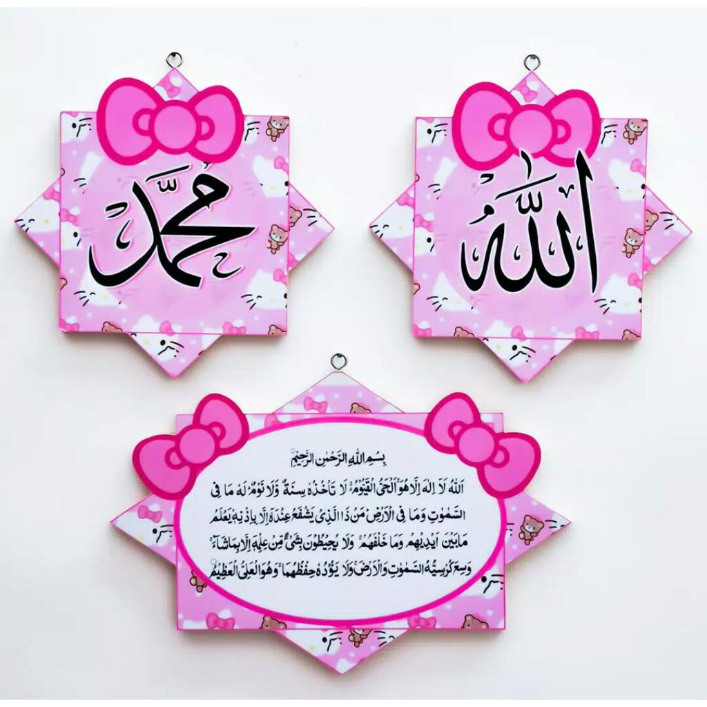3 In 1 Hello Kitty Pink Allah Muhammad Ayat Kursi Kaligrafi Hiasan