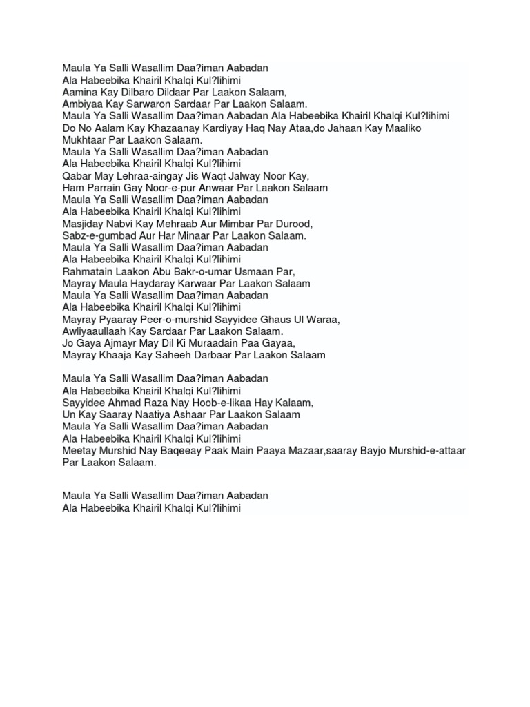Maula Ya Salli Wa Sallim Lyrics Semitic Words And Phrases